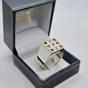 Este impresionante anillo sello combina la elegancia atemporal de la plata con el vibrante brillo de las circonias, creando una pieza de joyería única y llamativa. Es el accesorio perfecto para el hombre o la mujer que busca una joya con carácter y distinción.