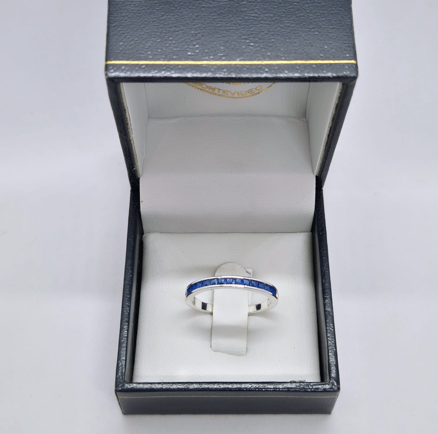 Este anillo de plata 925 con incrustaciones de zafiros azules destaca por su brillo profundo y sofisticación. Ideal para quienes buscan una joya refinada y versátil, perfecta tanto para uso diario como para ocasiones especiales.